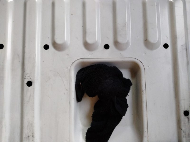 まずシートを固定する金具の部分をタオルで巻きつけます。